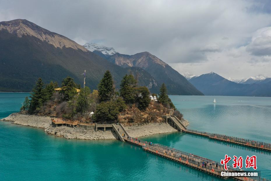巴松措位于西藏林芝,湖面海拔3480米,是西藏海拔最低的大湖。湖水呈碧綠色,清澈透亮,四周環(huán)繞的雪山和樹(shù)木倒映其中,美不勝收。圖為3月29日,游客在扎西島游玩。(無(wú)人機(jī)拍攝)中新社發(fā) 貢嘎來(lái)松 攝