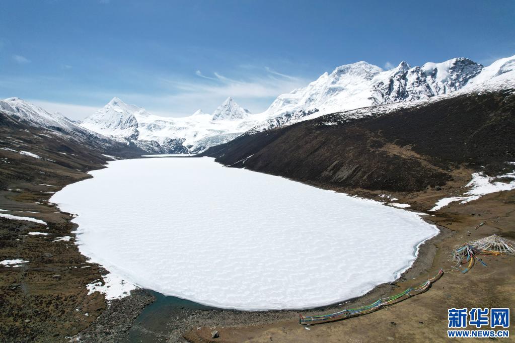 這是5月4日拍攝的薩普雪山和雪山腳下的冰湖(無(wú)人機(jī)照片)。新華社記者 孫瑞博 攝