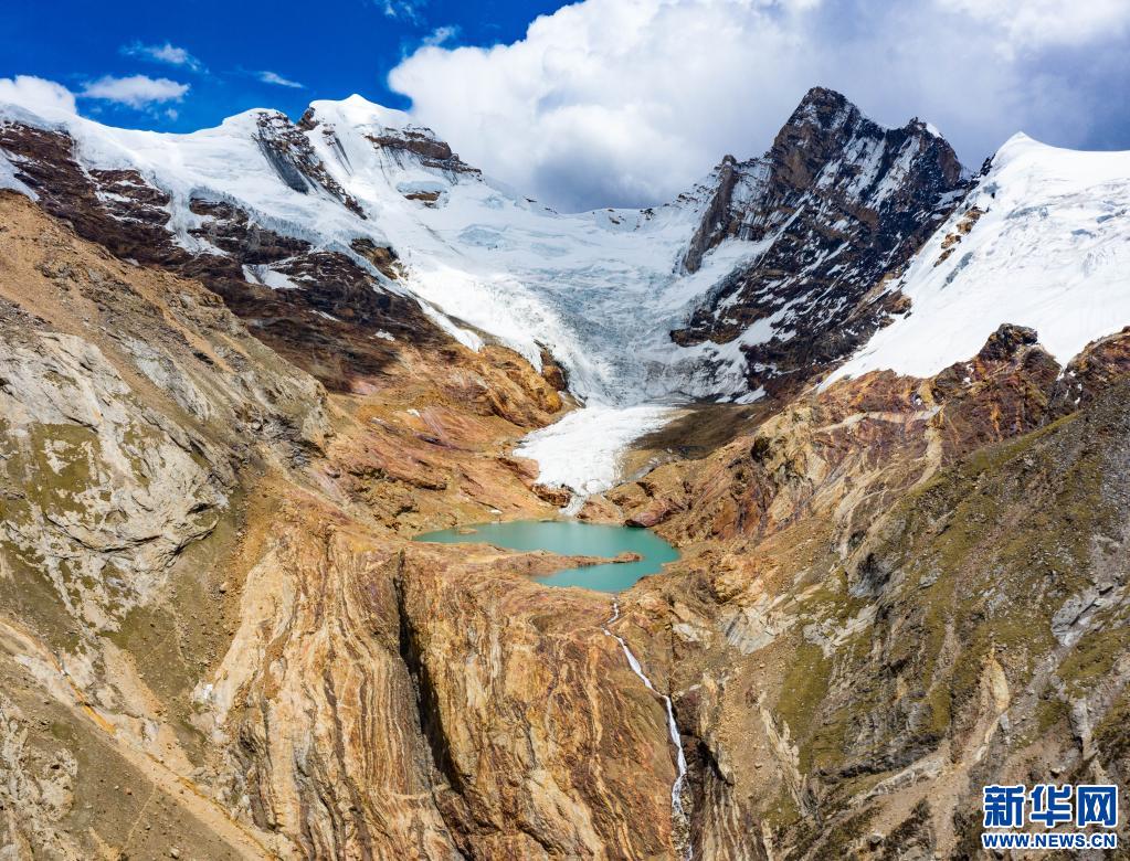 鳥瞰雅拉香布雪山腳下的冰川(6月4日攝,無(wú)人機(jī)照片)。新華社記者 洛卓嘉措 攝