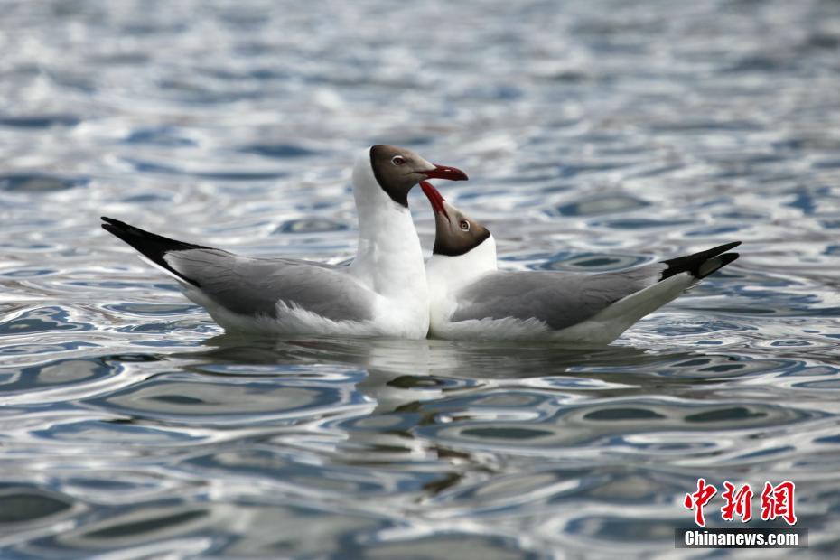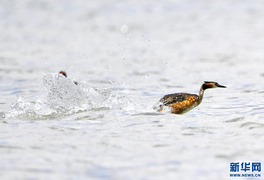 夏日里,鳳頭 和小 在西藏拉薩拉魯濕地國家級自然保護區(qū)水面上嬉戲。
