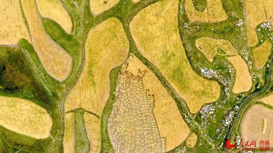 當(dāng)前正值青稞收獲季節(jié),拉薩河谷一帶農(nóng)民抓緊收割,農(nóng)田里一片豐收的繁忙景象。