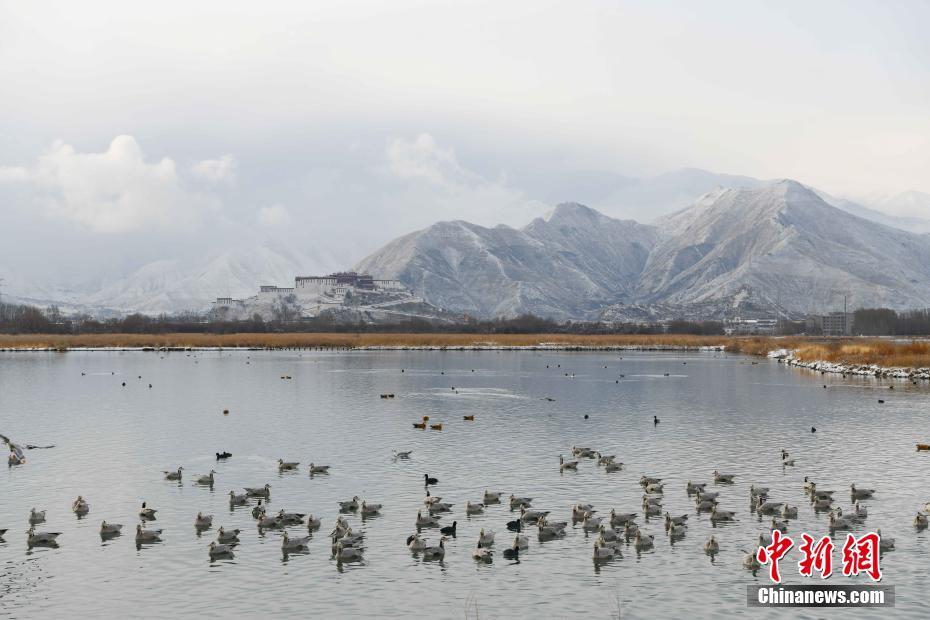 2月21日,從拉魯濕地遠(yuǎn)眺布達(dá)拉宮。當(dāng)日,西藏拉薩市迎來(lái)降雪,雪后的拉薩城區(qū)和周?chē)荷桨籽┌}皚,風(fēng)景如畫(huà)。 中新社記者 貢嘎來(lái)松 攝