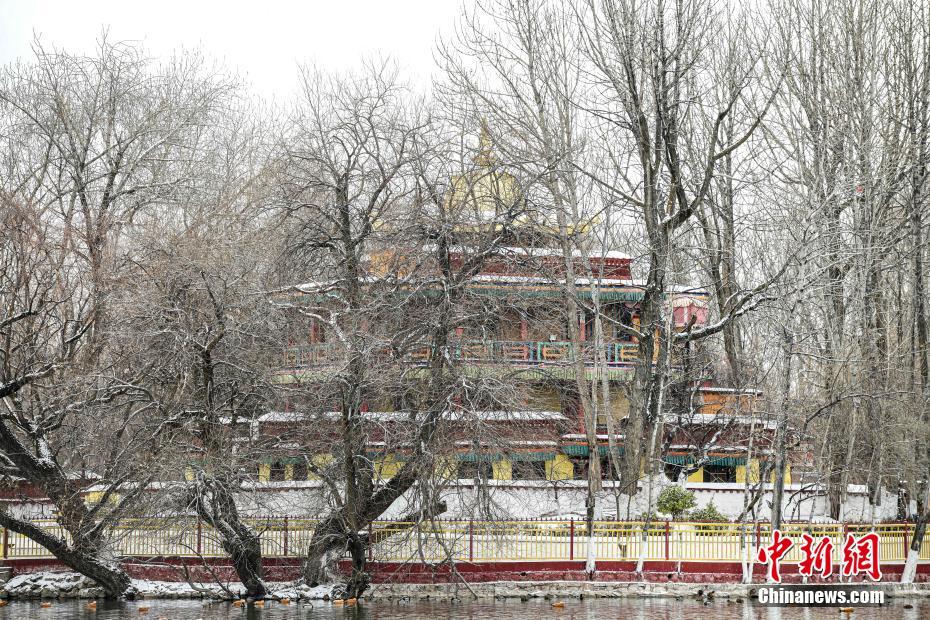 2月21日,拉薩市宗角祿康公園雪景。當(dāng)日,西藏拉薩市迎來(lái)降雪,雪后的拉薩城區(qū)和周?chē)荷桨籽┌}皚,風(fēng)景如畫(huà)。 中新社記者 貢嘎來(lái)松 攝