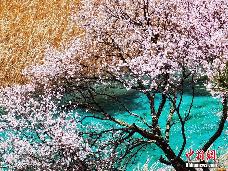 3月的九寨溝春回大地,暖陽(yáng)怡人,遍布河谷、湖畔、山腰的九寨扁桃花迎風(fēng)綻放,花期正當(dāng)時(shí)。梁楓 攝