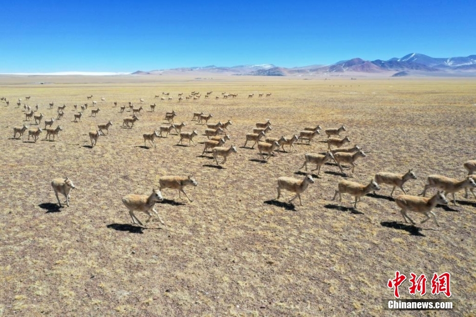 3月27日,西藏改則縣先遣鄉(xiāng)附近的藏羚羊種群。邊巴 攝