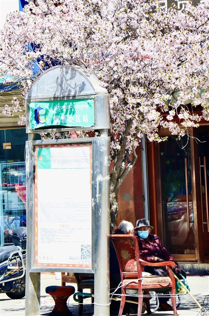 住在拉薩靠北邊的市民同樣能一飽眼福。娘熱北路兩側(cè)的榆葉梅已全部綻放,而緊鄰娘熱路的慈松塘中路和慈松塘東路更是一片春花爛漫的美好景象。慈松塘中路和北路的榆葉梅栽種較為密集,成團(tuán)成簇的淡粉色花朵擠在枝頭,樹下乘涼的老奶奶、樹邊??康墓卉?,在花朵的加持下,隨手一拍便是故事感極強的畫面。