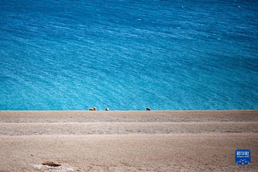 4月22日,鳥類在西藏阿里地區(qū)普蘭縣境內(nèi)瑪旁雍錯(cuò)飛翔。新華社發(fā)(劉曉東攝)