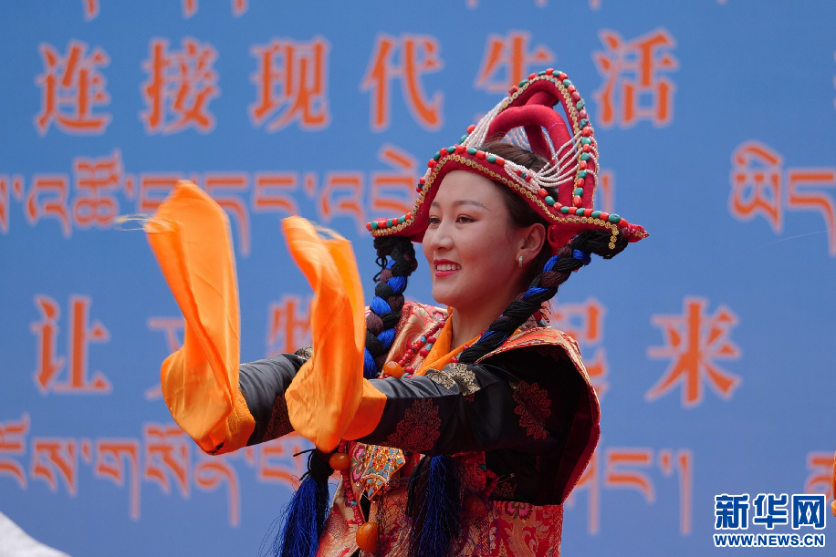 6月11日,西藏山南市貢嘎縣吉瓊村文藝演出隊在表演舞蹈《羊卓阿諧》。新華網(wǎng) 旦增努布攝