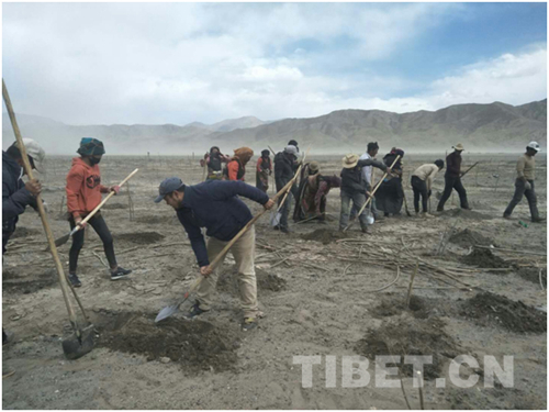 中國西藏網(wǎng)訊 仲春初四日,春色正中分。春天的拉薩河谷,萬物復(fù)蘇。在全民義務(wù)植樹的三月時節(jié),拉孜縣扎西崗鄉(xiāng)吉榮村路旁的沙地上,吉榮村駐村工作隊正在組織村民進(jìn)行義務(wù)植樹,轟鳴的機(jī)器聲和歡快的勞動號子,驚醒了農(nóng)田里前來越冬的各類候鳥。