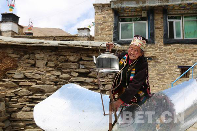 圖為姐姐西洛卓瑪在自家院子里的太陽灶上燒水