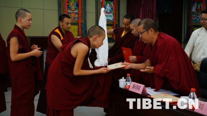中國(guó)西藏網(wǎng)訊 6月1日,中國(guó)藏語(yǔ)系高級(jí)佛學(xué)院蒙古國(guó)僧人培訓(xùn)班結(jié)業(yè)儀式在北京舉行。10名來(lái)自蒙古國(guó)烏蘭巴托賽音諾門寺、平均年齡只有14歲的學(xué)員,在國(guó)際兒童節(jié)的今天結(jié)業(yè)了。他們拿證書(shū)、得獎(jiǎng)學(xué)金、獲捐贈(zèng)經(jīng)書(shū)……可謂是收獲滿滿。