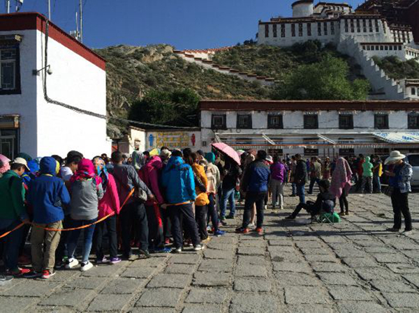 2015年布達拉宮門票預(yù)約處排起長龍 圖片來源:中國西藏新聞網(wǎng)