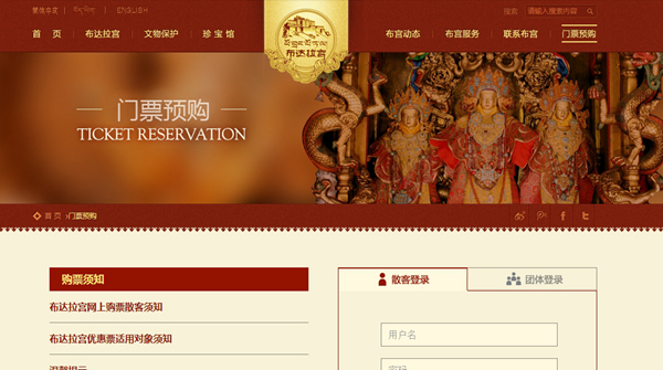 圖為布達拉宮官網(wǎng)購票網(wǎng)頁 網(wǎng)頁截圖