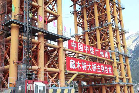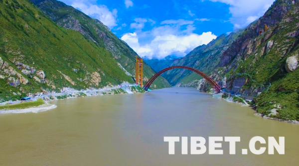 藏木特大橋位于西藏加查縣安饒鎮(zhèn)桑加峽谷內(nèi),地處海拔3350米的山地,主橋橫跨雅魯藏布大峽谷,水深66米,大橋采用430米中承式鋼管混凝土拱,拱高112米,是首座跨過雅魯藏布江的鐵路橋梁。