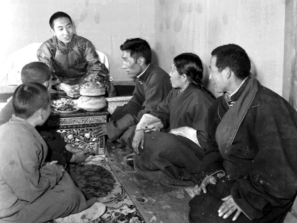 圖為十世班禪在藏區(qū)與群眾座談。圖片來源:中國網(wǎng)