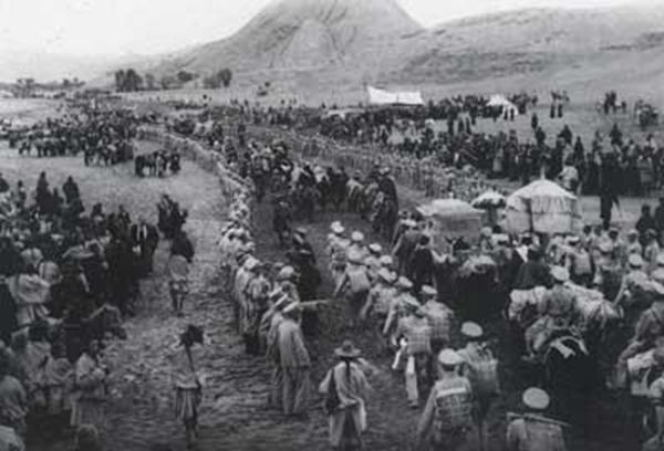 圖為十世班禪一行抵達日喀則時,等候歡迎的市郊民眾達六萬多人,許多僧俗百姓在此等了一個多月,見到離開西藏30多年的班禪喇嘛,許多信眾痛哭流涕,場面十分感人。李九齡 攝 圖片來源:《中國西藏(中文版)》2011年第03期。