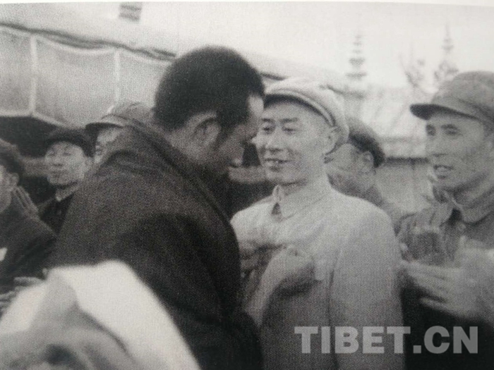 1952年4月28日,十世班禪額爾德尼?確吉堅(jiān)贊及其堪布會(huì)議廳委員會(huì)全體人員從青海返回西藏,到達(dá)拉薩。張經(jīng)武和人民解放軍駐拉薩機(jī)關(guān)、部隊(duì)、西藏地方政府各級官員、西藏地方部隊(duì),三大寺喇嘛、拉薩市僧俗群眾等兩萬多人迎接。圖為張經(jīng)武和十世班禪的合影。