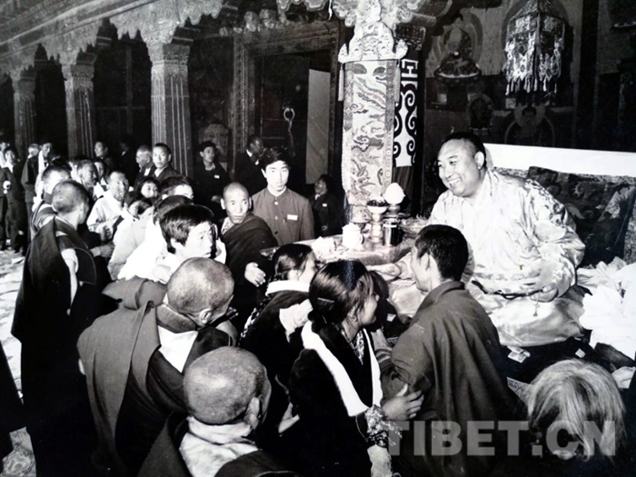十世班禪大師在大昭寺為信眾摸頂賜福,1982年。劉麗嘉攝