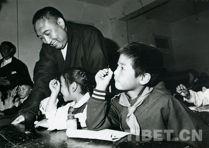 十世班禪大師在拉薩市第一小學視察,1982年。劉麗嘉攝
