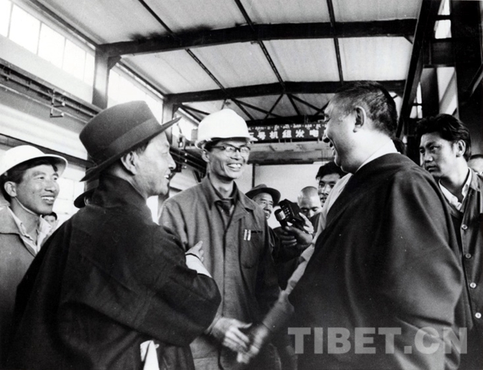 十世班禪大師視察拉薩團結卡墊生產(chǎn)合作社,1982年。劉麗嘉攝