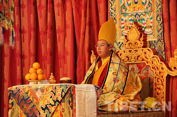 圖為十一世班禪端坐法座,領(lǐng)誦經(jīng)文。攝影:李元梅