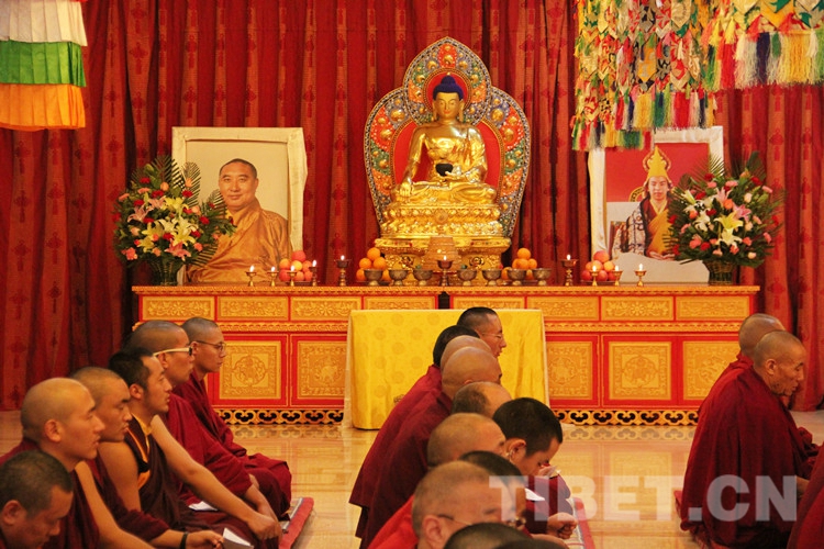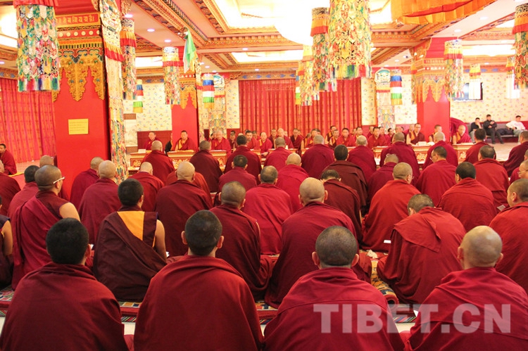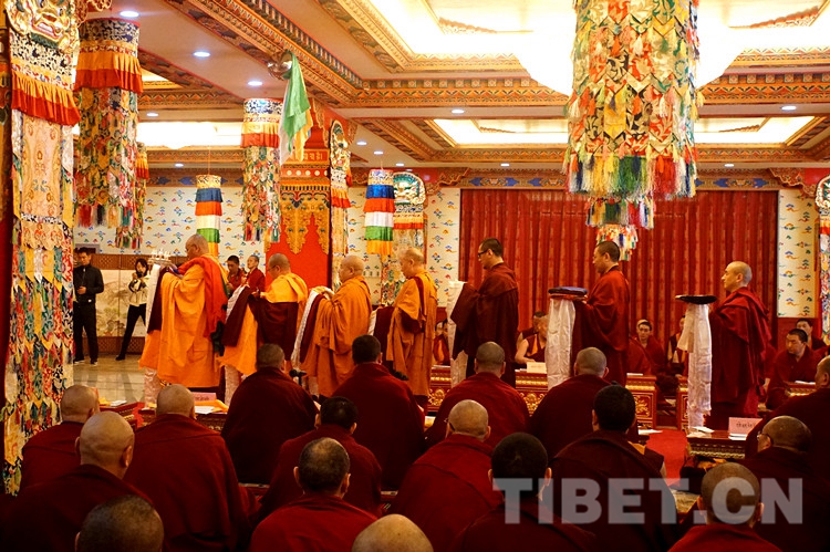 法會(huì)禮請(qǐng)全國(guó)政協(xié)常委、中國(guó)佛教協(xié)會(huì)副會(huì)長(zhǎng)班禪額爾德尼?確吉杰布拈香主法,中國(guó)藏語(yǔ)系高級(jí)佛學(xué)院領(lǐng)導(dǎo)、經(jīng)師、學(xué)員及宗教界教職員工約130人參加法會(huì)。