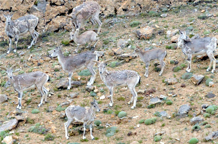 這是生活在羌塘國家自然保區(qū)的國家二級保護(hù)動物巖羊。(唐召明2009年8月9日攝)