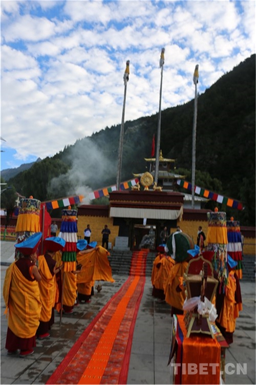 吉隆溝里草木蔥蘢、流水潺潺。8月22日,十一世班禪前往強真寺朝拜禮佛,按照宗教傳統(tǒng)儀軌,寺院僧人列隊恭迎。強真寺位于吉隆鎮(zhèn)邦興村,寺廟始建于7世紀,和拉薩的大昭寺屬同一時期,是格魯派一座歷史悠久的古寺廟。