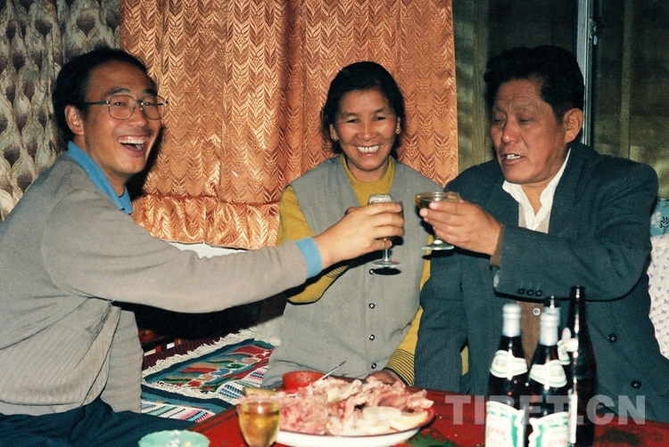 圖為唐召明在時任西藏自治區(qū)人大常委會副主任洛桑丹珍家中做客(唐召明1998年攝)