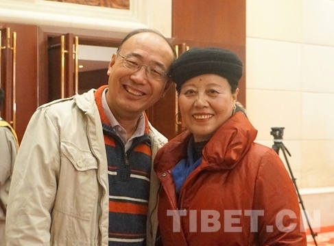 圖為唐召明(左)在《中國西藏》雜志創(chuàng)刊30周年、中國西藏網(wǎng)創(chuàng)辦20周年座談會(huì)上和雜志社編輯合影 攝影:王茜