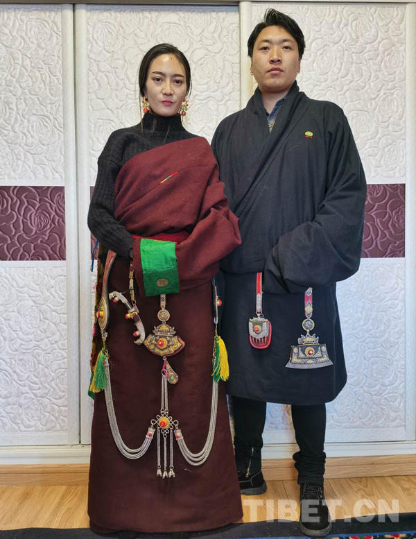 索南旦周最小的女兒叫梅朵,今年23歲,“梅朵”漢語意為“花朵”,她和她的名字一樣漂亮。她是索南旦周家里識(shí)文斷字的人。她的老公尕瑪才丁人高馬大,是典型的康巴漢子,他電大畢業(yè)后自主創(chuàng)業(yè),選擇靠祖?zhèn)鞯慕疸y首飾、佛像制造安身立命,在結(jié)古地區(qū)小有名氣。他打制的金銀首飾,精工細(xì)作,一絲不茍,真材實(shí)料,信譽(yù)度很好。他們主要接廠家和散戶訂制。梅朵兩口子不善言語,而他倆一帥一美,藏裝上佩戴各式自己打制的金銀裝飾品,是最好的語言和廣告。(中國西藏網(wǎng) 通訊員/才仁當(dāng)智)