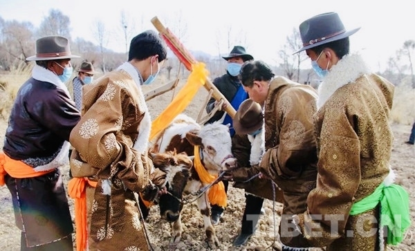 春耕節(jié)是貴德縣農(nóng)區(qū)祈愿豐收的重要節(jié)日,每到這個節(jié)日,村里男女老少身著節(jié)日盛裝,舉著“切瑪盒”、青稞酒聚集在田間地頭,一起歌舞、煨桑、祈禱豐收。
