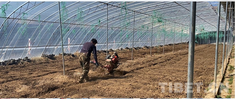 中國(guó)西藏網(wǎng)訊 “噠、噠……”2月27日,在四川省甘孜藏族自治州理塘縣濯?,F(xiàn)代農(nóng)業(yè)園區(qū)的康藏陽(yáng)光種植基地,濯桑鄉(xiāng)漢戈村村民降央開(kāi)著手扶拖拉機(jī)在蔬菜大棚里耕地。