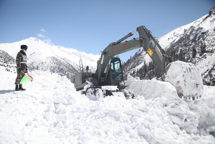為盡快恢復(fù)通行,安全員時刻關(guān)注山體情況,確保一旦發(fā)生次生雪崩災(zāi)害能夠及時傳達(dá)撤退命令。操駕員駕駛救援機械相互協(xié)調(diào)作業(yè),快速清理路基塌方體。官兵們還給滯留群眾發(fā)放了食物。