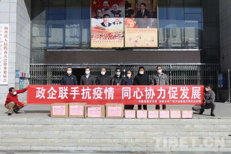 3月16日,西藏自治區(qū)山南市加查縣在政務中心前舉行“政企聯手抗疫情 同心協力促發(fā)展”的醫(yī)療物資捐贈儀式。