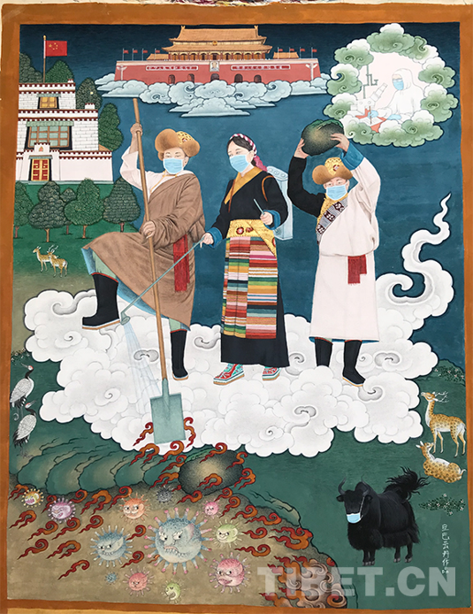 “疫情改變了很多人的工作生活節(jié)奏,看到各地的疫情防控工作,大家對戰(zhàn)勝疫情很有信心?!笨吹皆S多人奉獻個人力量,共同戰(zhàn)“疫”,旦巴云丹便想到要用手中的畫筆,樸素表達戰(zhàn)“疫”的信心和決心。