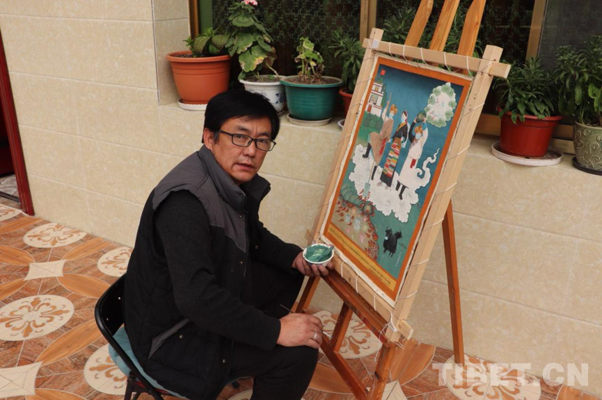 繪制完戰(zhàn)“疫”主題唐卡,旦巴云丹并沒有停下來。他要忙著經(jīng)營堆龍日姆勉唐派唐卡藝術(shù)農(nóng)民專業(yè)合作社。這個自2015年成立的合作社,已有15名群眾參與其中。旦巴云丹要負責他們的唐卡繪畫教學,還要負責合作社產(chǎn)品對外銷售,只有這樣,才能讓周邊的群眾也跟著致富。(中國西藏網(wǎng) 記者/王媛媛 圖片由旦巴云丹提供)