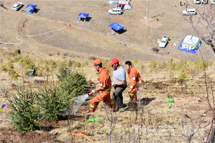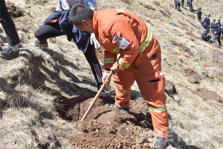 圖為昌都市森林消防支隊江達中隊積極參加駐地植樹活動
