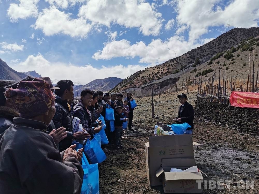 圖為工作人員在邊壩縣拉孜鄉(xiāng)蟲草采挖點(diǎn)向農(nóng)牧民群眾發(fā)放避險(xiǎn)手冊等資料