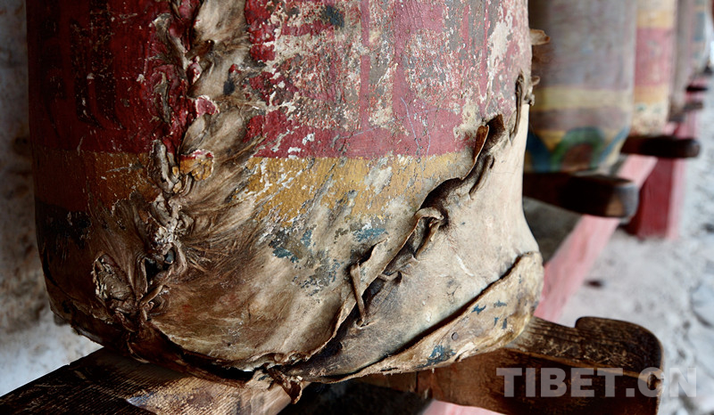 圖為縫補(bǔ)過的羊皮經(jīng)筒