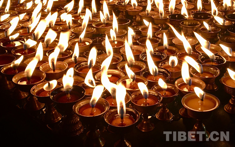 圖為跳動(dòng)著火焰的酥油燈