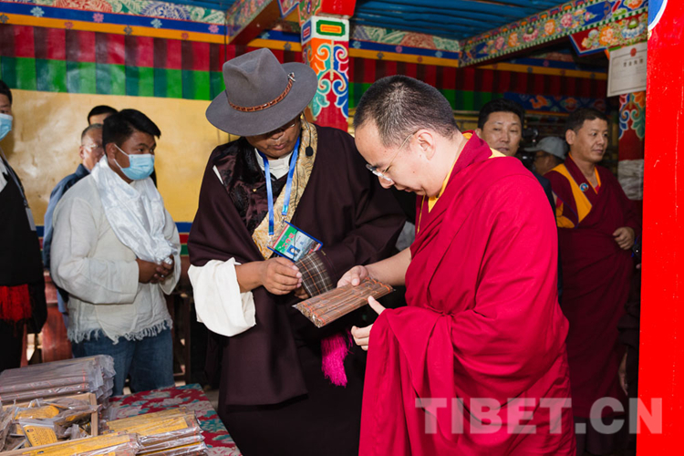 圖為十一世班禪察看藏香產(chǎn)品 攝影:鄭朔