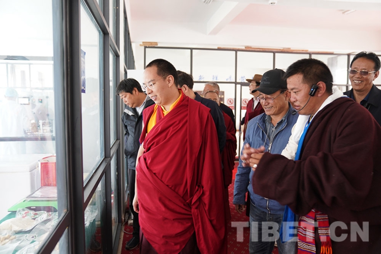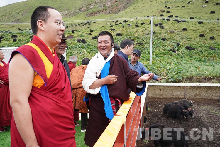 在調(diào)研中,十一世班禪關(guān)心的問題得到了很好的解答,他頻頻點頭表示贊許。從娘亞牦牛原種場了解到養(yǎng)殖基地的建成運營情況后,十一世班禪立刻趕往公司加工車間和銷售店,觀摩酥油、奶制品制作過程,了解銷售、帶動牧民增收情況。十一世班禪希望公司能夠?qū)⒓卫璧淖匀粴夂?、土地條件等實際情況與科學實驗相結(jié)合,樹立好家鄉(xiāng)民族特色品牌,為草原生態(tài)保護和畜牧業(yè)發(fā)展探索經(jīng)驗。