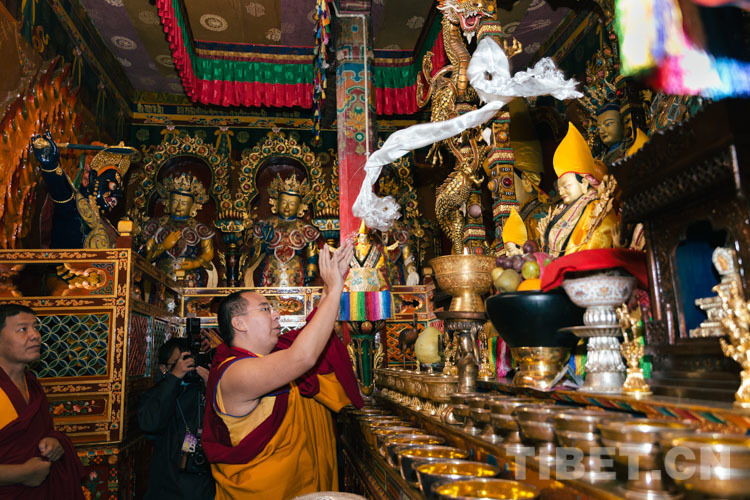 圖為十一世班禪在吉汝寺禮佛 攝影:鄭朔