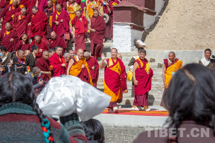 圖為十一世班禪在吉汝寺向信教群眾揮手致意 攝影:趙耀