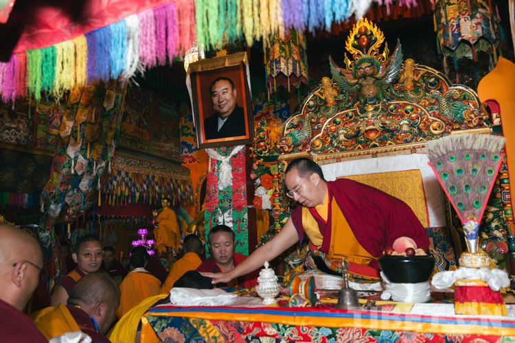 圖為十一世班禪為日瓊波多寺僧人摸頂賜福 攝影:鄭朔