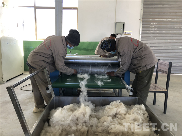 圖為平措次仁(左)從事羊絨加工 攝影:趙二召