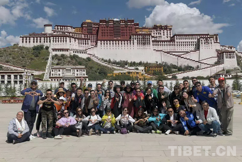 這是中國評劇院藝術家在拉薩演出結束后,來到布達拉宮前合影留念(唐召明提供,2018年9月19日攝)