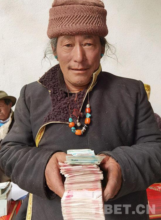 圖為參加合作社的村民拿到了分紅款