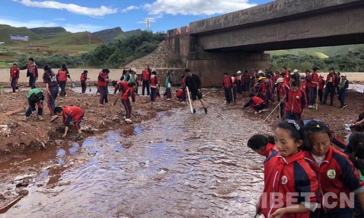 圖為宋吉辰與學(xué)生一起在撿垃圾 圖片由宋吉辰提供